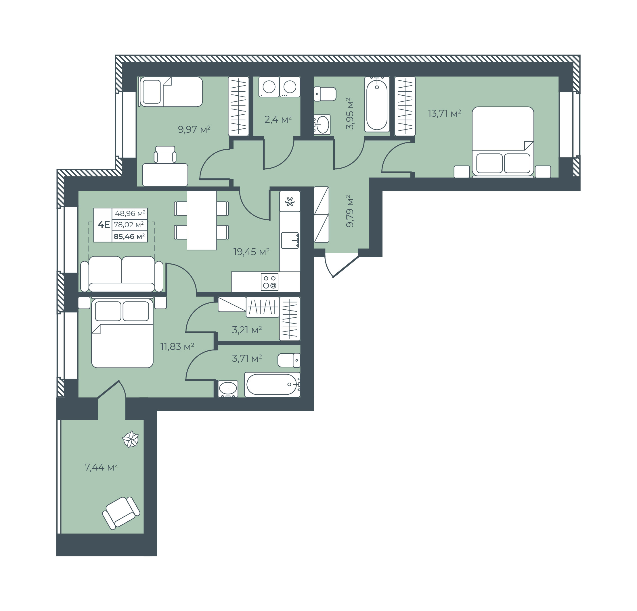 Чистовая отделка, потолки 2,8 м, просторные планировки с гардеробными.